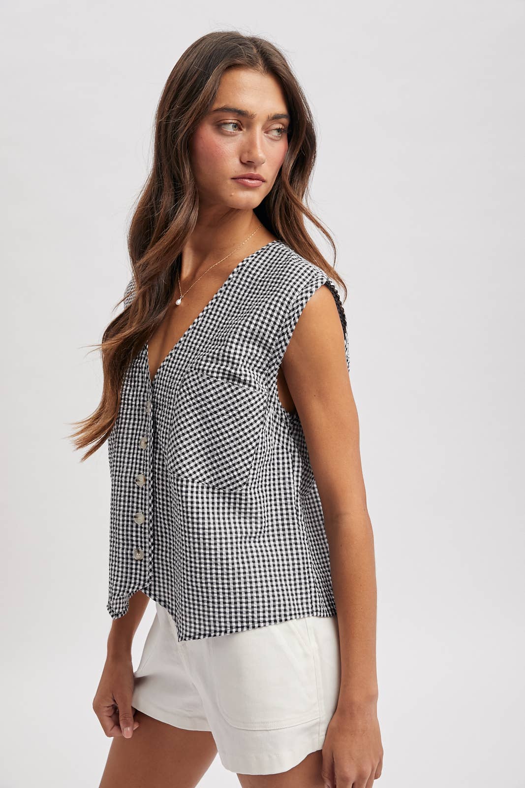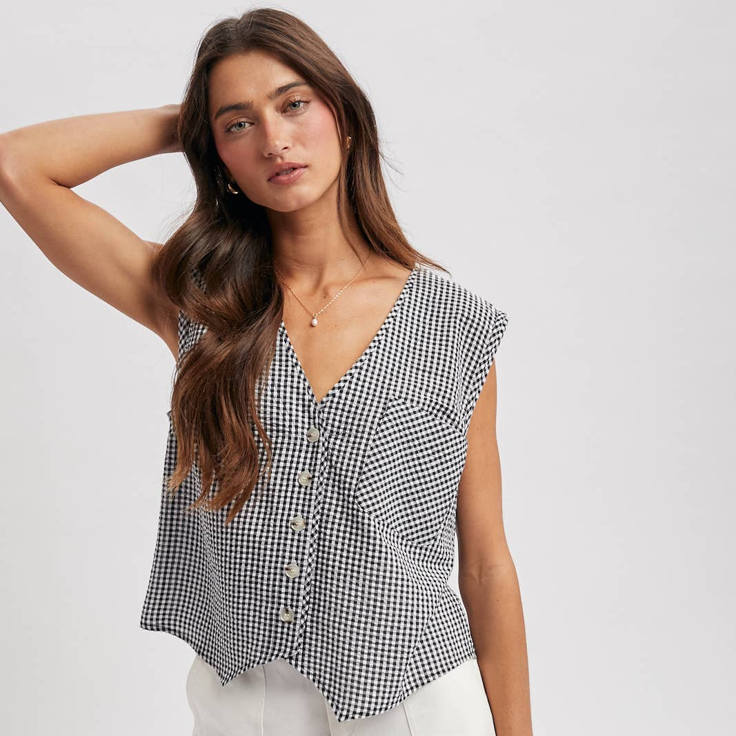 Daniela Gingham Button-Up Tank Top
